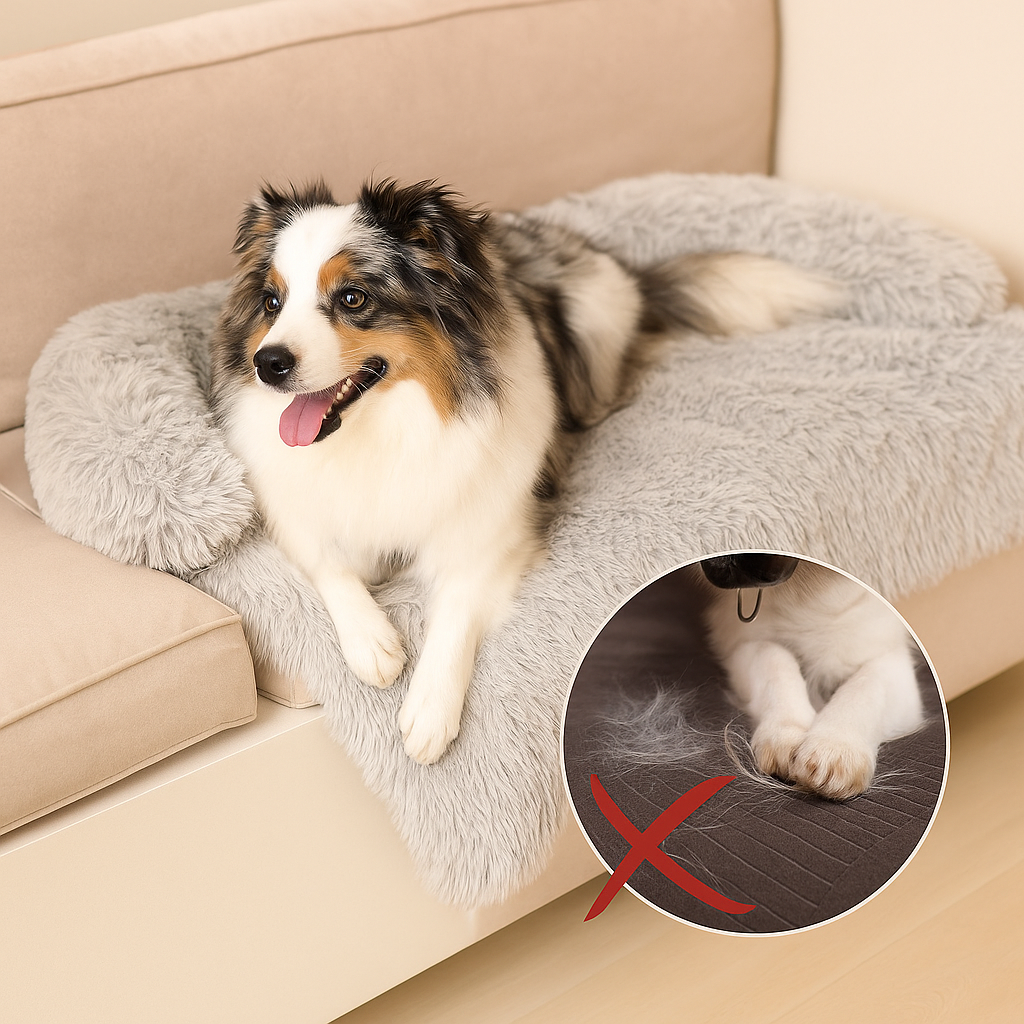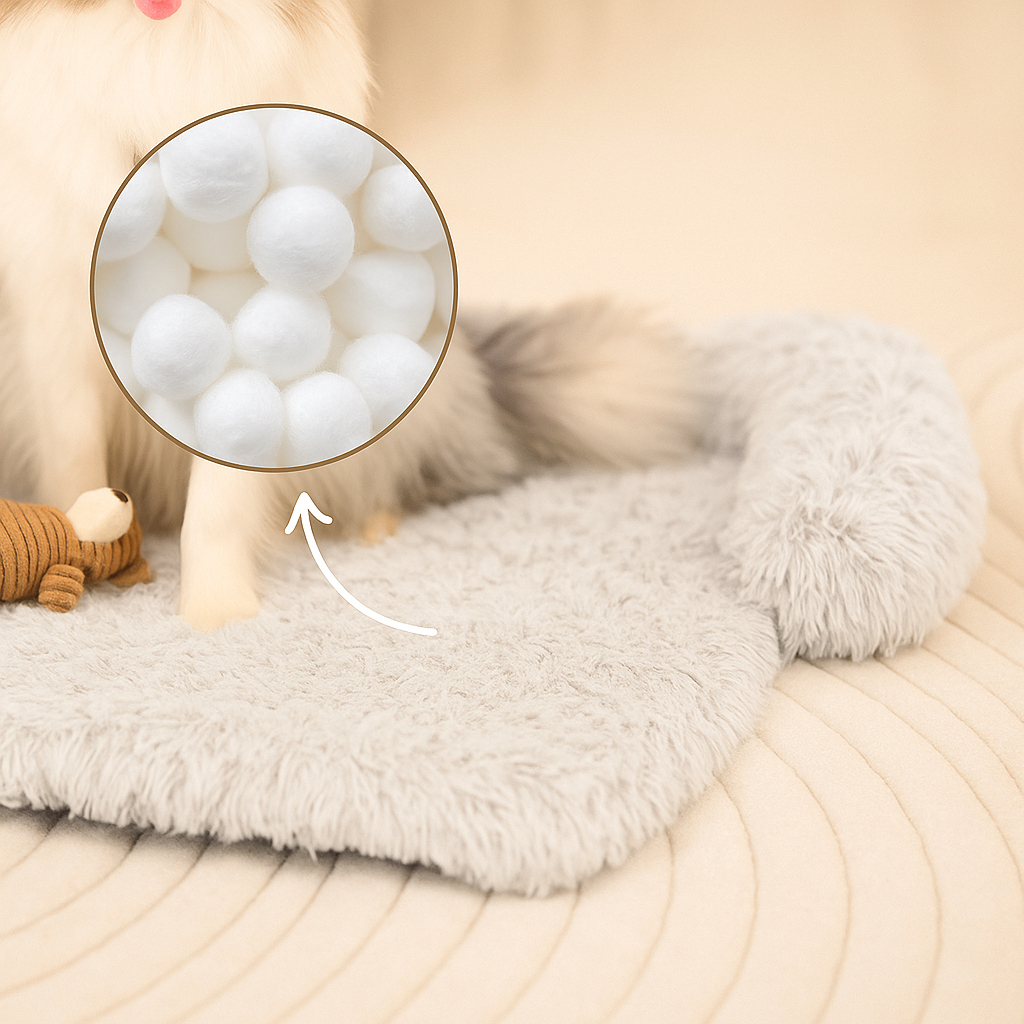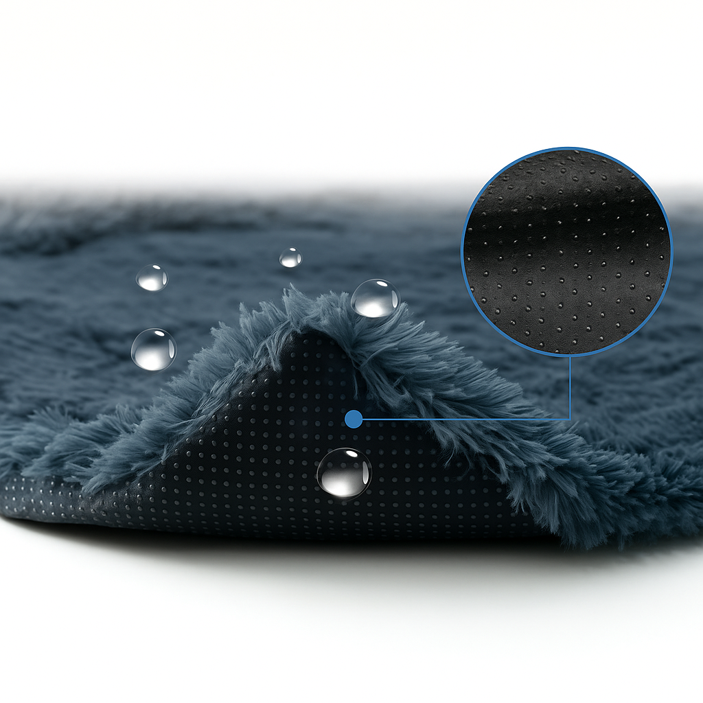 La funda es impermeable y desmontable: abre la cremallera, saca el relleno y a la lavadora. La base antideslizante mantiene la cama en su sitio incluso cuando tu peludo salta o juega.